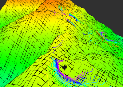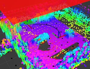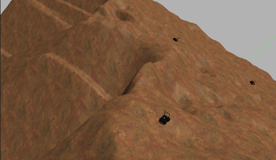 In our recent results, we have tested in simulation with Mars surface and used a rover simulator to simulate the 2.5 D motion planning for slow-speedcomplex terrain traversability assessment. Left: Mars rover needs to make motion decisions in the navigable space with spatially varying terrestrial characteristics (cliffs, valleys, ridges, etc). This is different from the simplified and structured environments where there are only two types of representations, i.e., either obstacle-occupied or obstacle-free. Middle and Right: our preliminary result with three rovers exploring on NASA's Mars terrain model.